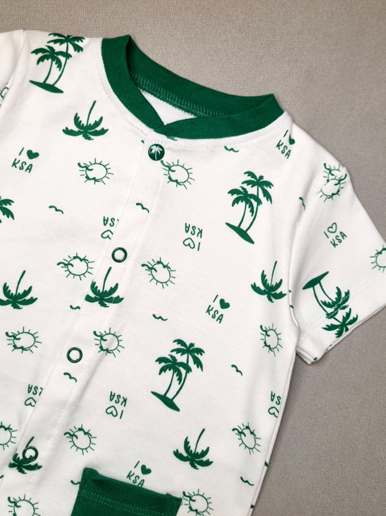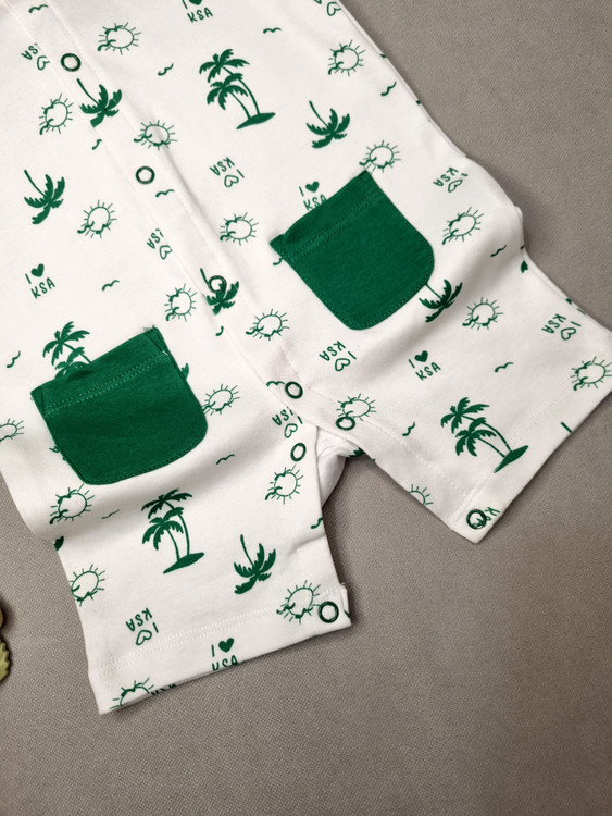 رامپر طرح نخل 🌴 از برند جو.نیور، با پارچه نخ پنبه لطیف و طراحی دکمهای برای راحتی بیشتر کوچولوت!👼