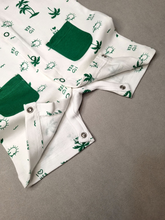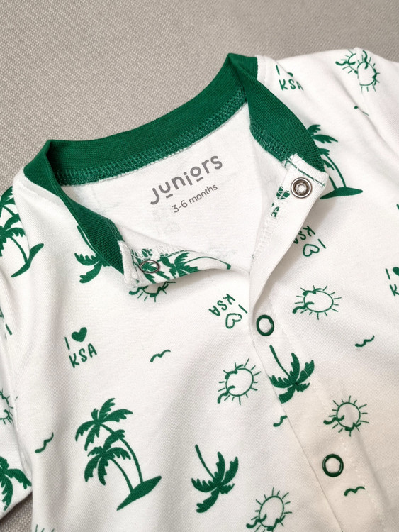رامپر نخ پنبه نوزادی تمام دکمه برند جونیور با طرح نخل