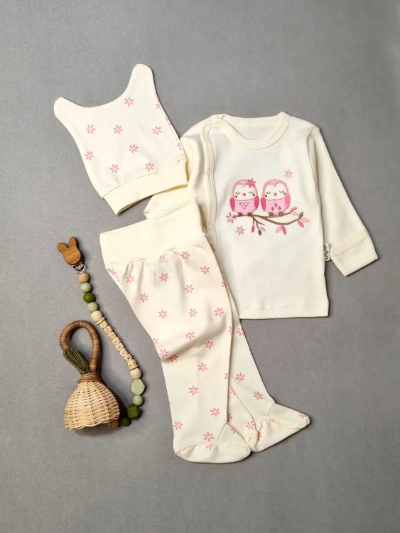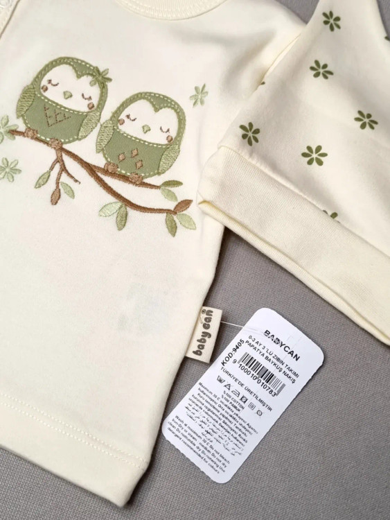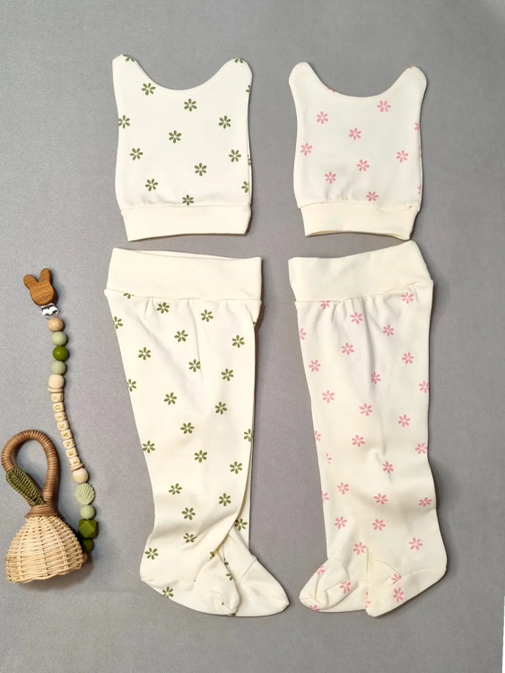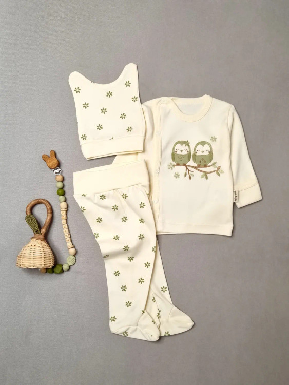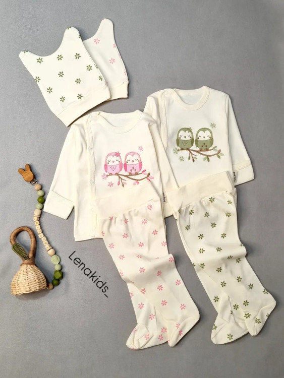 🌿👶 ست نوزادی بیمارستانی سهتیکه ترک با جنس نخ پنبهای، بهترین انتخاب برای راحتی و شیکی کوچولوتونه!