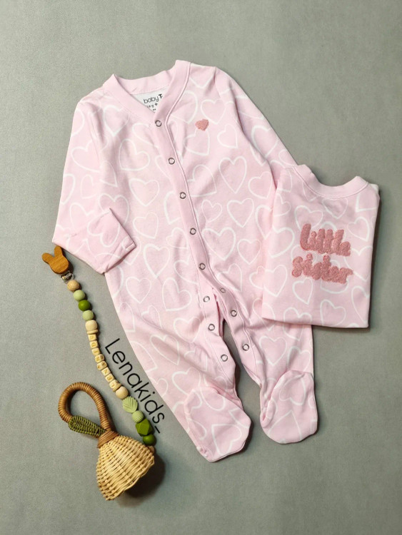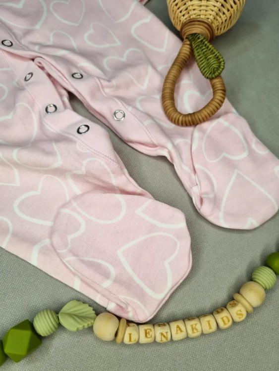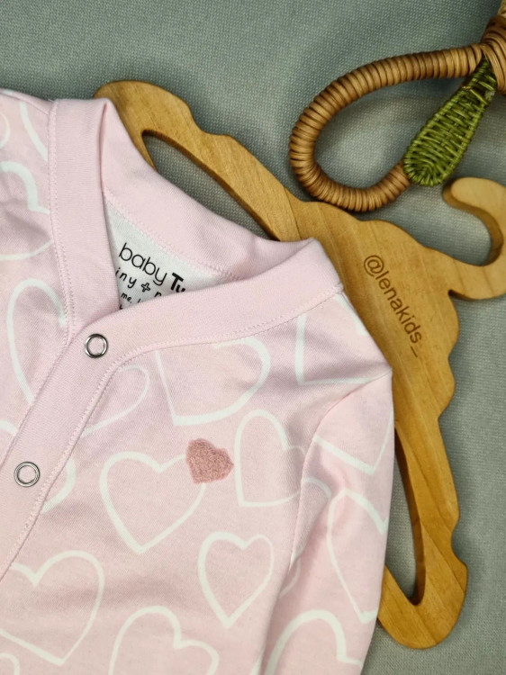 این سرهمی نخ پنبه وارداتی جورابدار طرح قلبی صورتی با جنس نرم و تنفسپذیرش، انتخابیه ایدهآل برای دختر کوچولوی شیکپوشت 💖