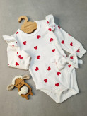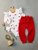 ست بادی، شلوار و هدبند دخترانه طرح قلبی قرمز یلدایی