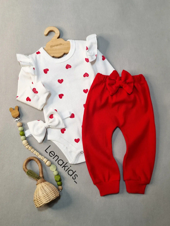 ست بادی، شلوار و هدبند دخترانه طرح قلبی قرمز، انتخابی جذاب و خاص برای شب یلدای کوچولوی شما 🍉 این ست یلدایی با رنگ قرمز شاد و طراحی قلبی و جنس نرم و لطیف بادی و شلوار باعث راحتی کامل نوزاد میشه و هدبند هماهنگش استایل کوچولوتون رو تکمیل میکنه 💖 اگر دنبال لباس نوزادی مخصوص یلدا هستید، این ست قرمز قلبی بهترین گزینه برای عکسهای یادگاری یلداییه 📸✨ @lenakids_ @lenakids_ 📏سایزبندی و اندازه: سایز ۱ (مناسب ۳تا۶ ماه): قد بادی ۳۸ پهنا ۲۱ قد شلوار ۳۸ فاق شلوار ۱۸ سایز ۲(مناسب ۶تا۱۲ ماه): قد بادی ۴۲ پهنا ۲۳ قد شلوار ۴۰ فاق شلوار ۲۰ سایز۳(مناسب ۱۲تا۱۸ماه): قد بادی ۴۴ پهنا ۲۴ قد شلوار ۴۳ فاق شلوار ۲۱ سایز۴(مناسب۱۸تا۲۴ماه): قد بادی ۴۷ پهنا ۲۶ قد شلوار ۴۶ فاق شلوار ۲۲ 💰بهاء با احترام:۳۸۵ تُ مَن🌱 @lenakids_ ‼️لطفاً یکی دو درجه روشن یا تیره بودن رو به خاطر شرایط نور و عکاسی در نظر بگیرید. جثه و سرعت رشد کودکان باهم متفاوت است لطفا بدون در نظر گرفتن سایز, اندازه ها را با نرمالترین لباس کودکانتان تطبیق دهید و خطای یک الی دو سانت رو در اندازه گیری لحاظ کنید.در خریدتون دقت فرمایید بعد از ثبت سفارش تعویض و مرجوعی امکانپذیر نمی باشد.