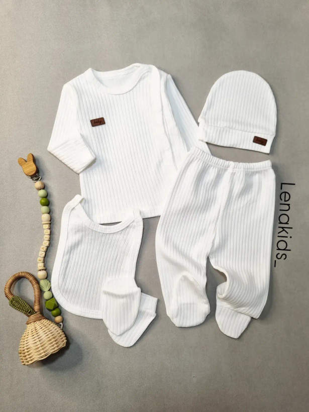 ست ۵ تیکه نوزادی سفید کبریتی ترک، با جنس نخپنبهای ضد حساسیت، بهترین انتخاب برای پوست لطیف کوچولوتونه 🌿