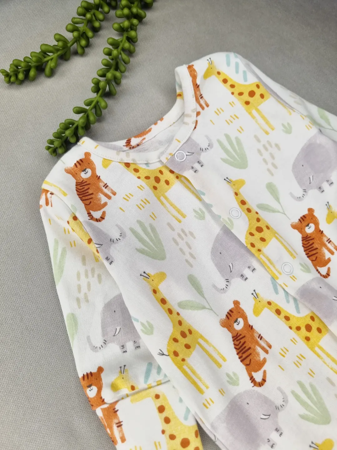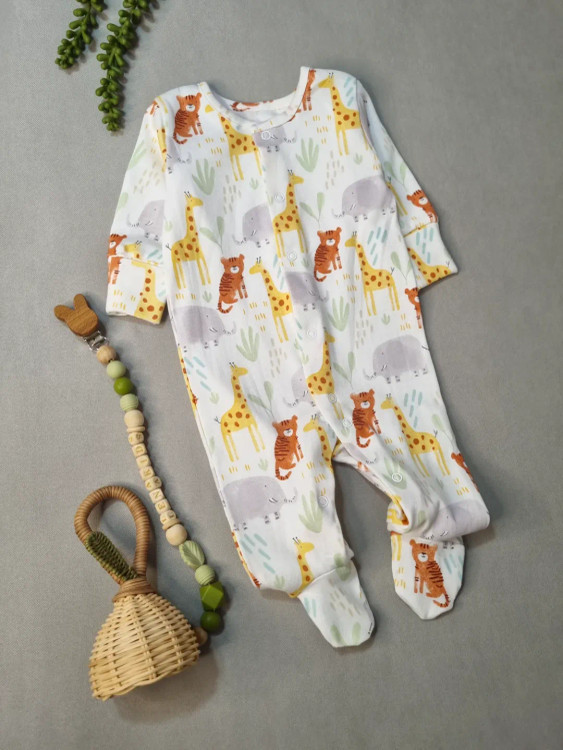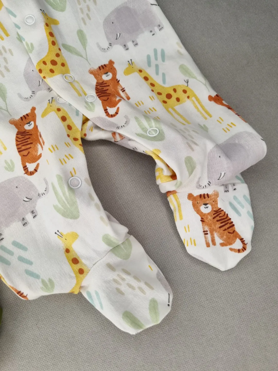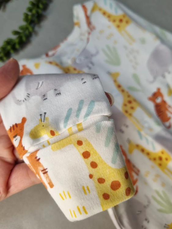 سایز ۰ تا ۱ ماه: قد سرشونه تا فاق ۳۲ پهنا ۲۱ قد کل تا مچ پا ۴۱