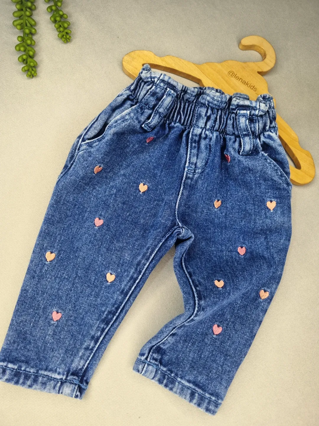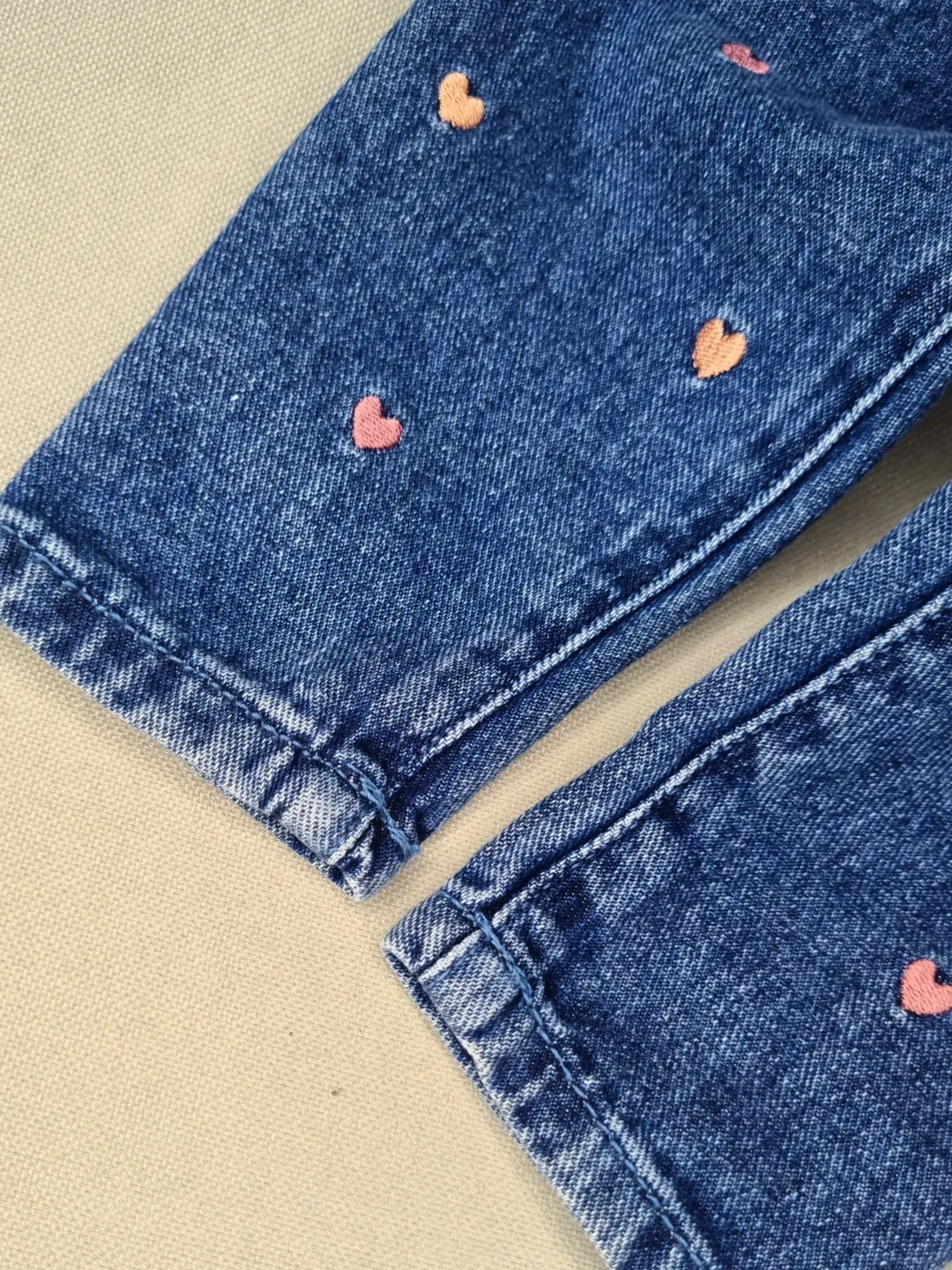 شلوار جین آبی دخترانه وارداتی با طرح قلبی 💕